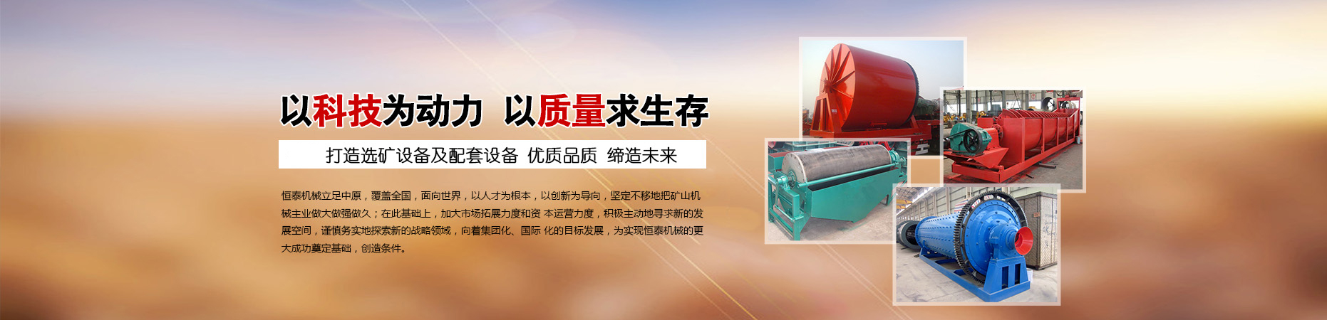 鞏義市恒泰機(jī)械廠順應(yīng)全球環(huán)境保護(hù)的趨勢,緊密跟隨世界科技發(fā)展步伐,先后研制多種節(jié)能環(huán)保型機(jī)械設(shè)備,形成規(guī)模化批量生產(chǎn)。尤以烘干機(jī)設(shè)備、破碎機(jī)設(shè)備、撕碎機(jī)設(shè)備、給料篩分設(shè)備、球磨機(jī)選礦設(shè)備的生產(chǎn)設(shè)計(jì),具有豐厚的技術(shù)經(jīng)驗(yàn),產(chǎn)品機(jī)械化、自動化程度高,質(zhì)量穩(wěn)定、安全。